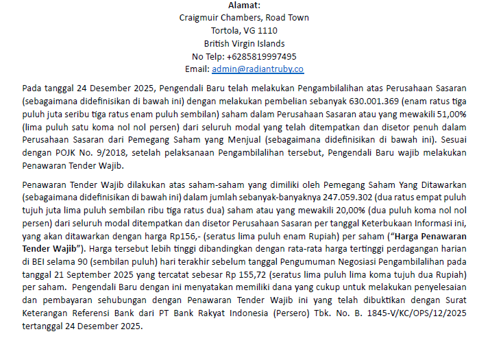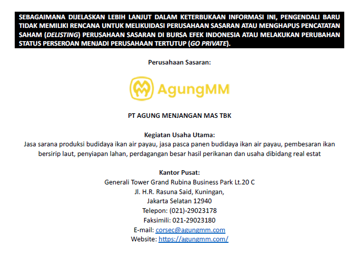 Tender Offer – PT Agung Menjangan Mas, Tbk (AMMS)